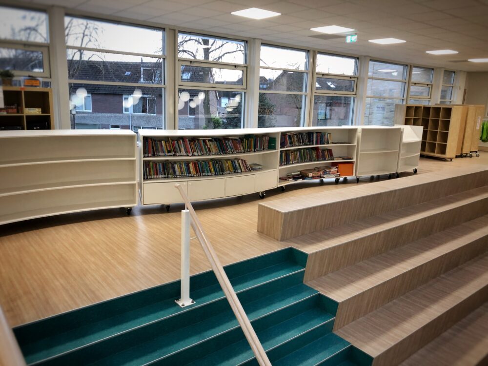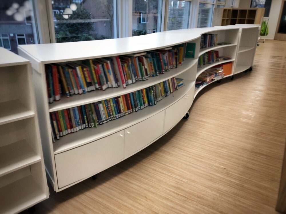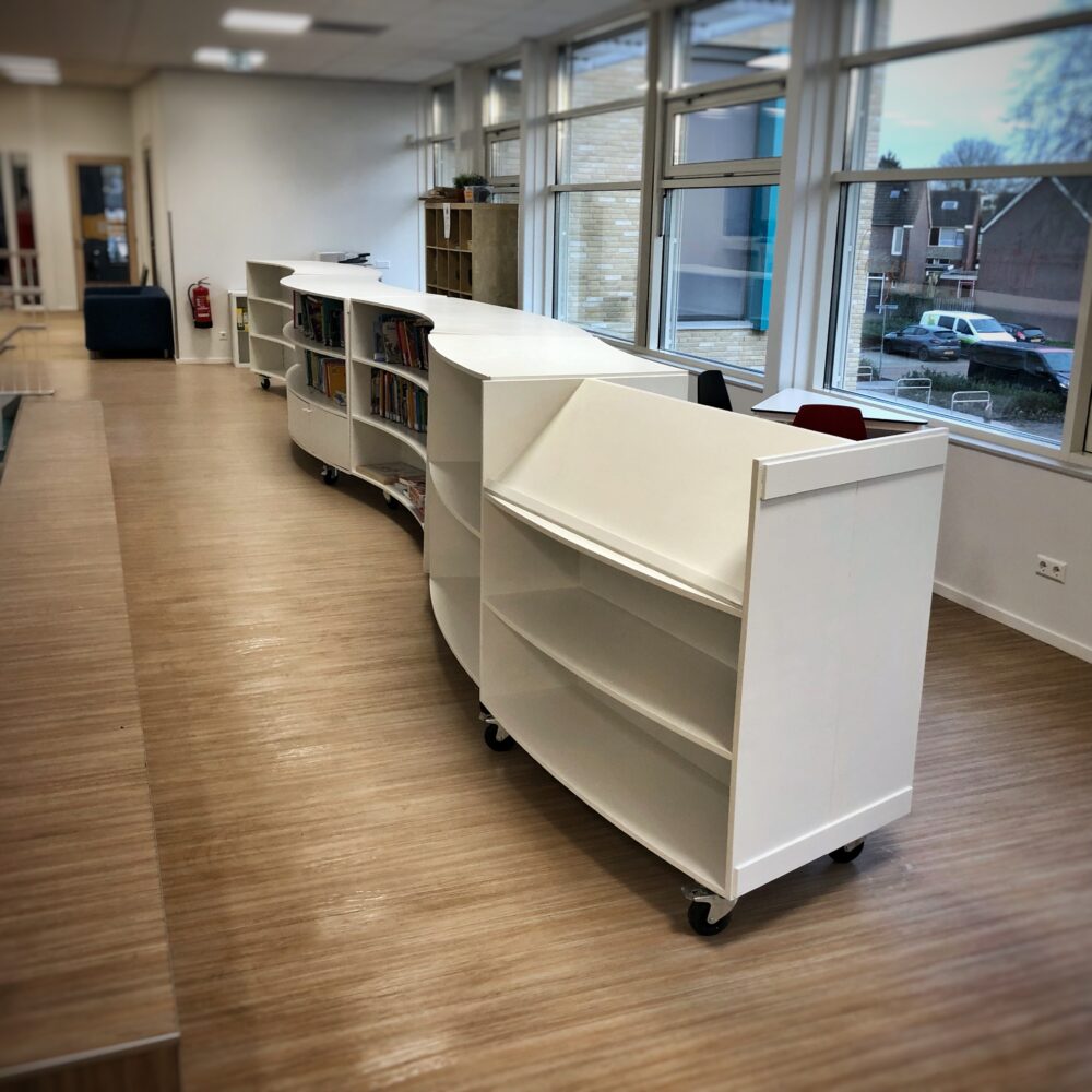 Voor de nieuwbouw van de Grondtoon en Groenschool kregen wij de vraag voor een serie bibliotheek kasten. Het ontwerp mocht duidelijk afwijken van standaardkasten, flexibel zijn en plek voor verschillende formaat boeken.