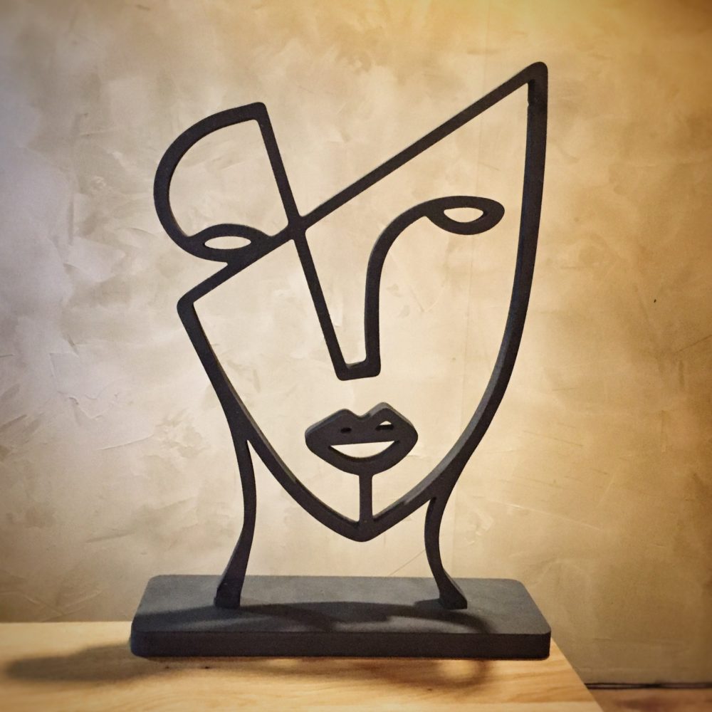 Een lijn tekening van een vrouwengezicht. Geïnspireerd op het werk van Picasso in een abstracte stijl.