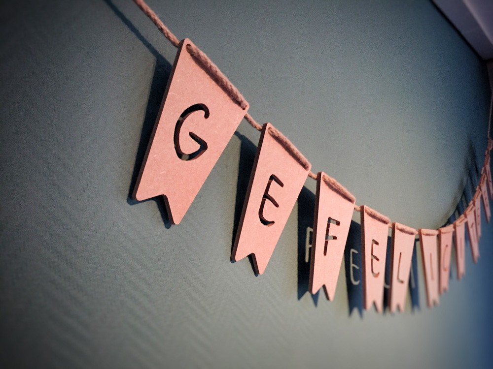 Houten vlaggenlijn met vrolijke vlaggetjes!