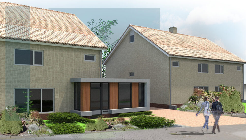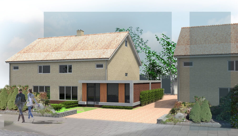 Voor deze twee-onder-een-kap woning aan de Havenstraat in Nijkerk zijn wij benaderd om een uitbouw naar de zijkant te bedenken die een moderne touch toevoegd aan de bestaande bouw uit 1975.